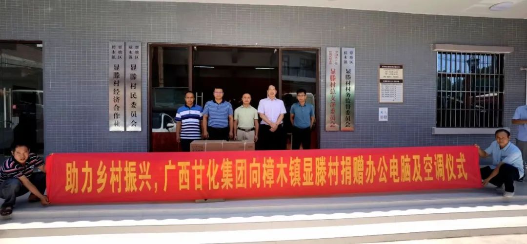 8月1日上午,廣西甘化集團有限公司向貴港市覃塘區(qū)樟木鎮(zhèn)顯滕村民委員會贈送辦公用品儀式在該村村民委員會辦公樓前舉行,樟木鎮(zhèn)黨委副書記譚宏義、貴港甘化股份有限公司劉曉東副總經理、顯滕村民委員會黨支部書記、村委主任郭慶杉出席了活動。