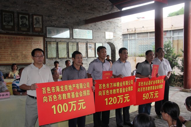 百色萬林糖業(yè)有限公司、百色市海龍房地產(chǎn)有限公司、百色市必晟礦業(yè)有限公司分別向百色市教育基金會捐款