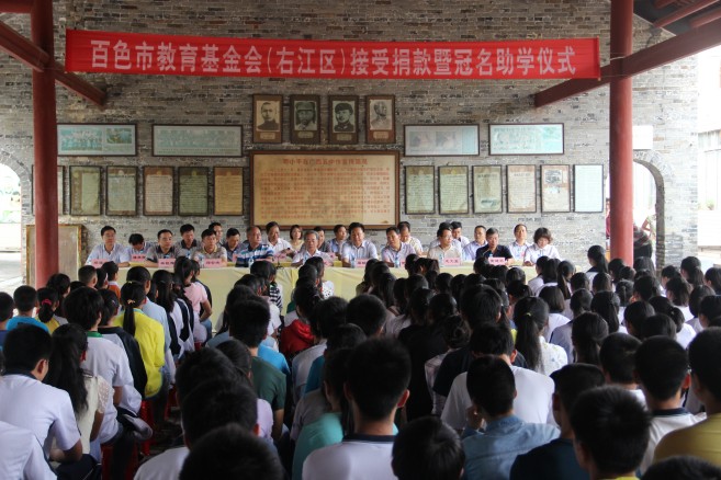 百色市教育基金會(右江區(qū))接受捐款暨冠名助學(xué)儀式在百色中學(xué)紅禮堂舉行