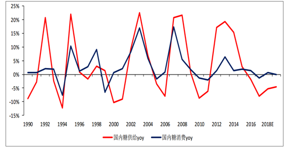 國內(nèi)糖供給端變化彈性遠(yuǎn)大于需求端