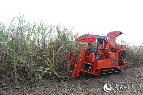 甘蔗“雙高”示范基地采用機(jī)械化收割